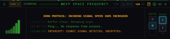 - 🖱️ Passive Gameplay: Decrypt signals with a tactile wave-matching minigame.