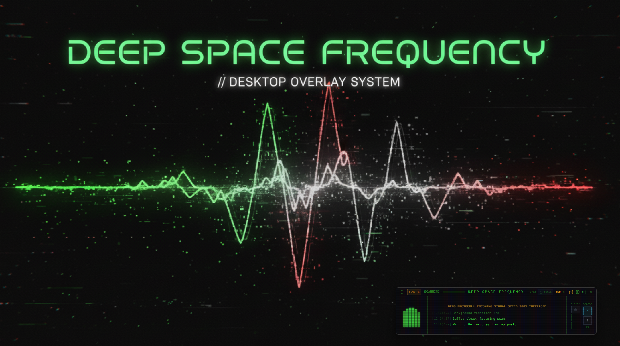 Deep Space Frequency is a desktop companion designed to run in the background while you work, code, or browse. It turns your screen into a listening post for the void.